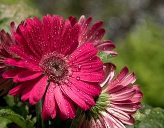 Keywords: transvaal daisy gerbera pink purple flower magenta sunny naturepink flora drops water dew morning