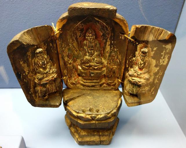 Keywords: Traveling shrine, China, Ming or Qing dynasty, wood with traces of pigment - Fitchburg Art Museum - DSC08744.JPG en Exhibit in the Fitchburg Art Museum Fitchburg Massachusetts USA This artwork is old enough so that it is in the public domain Photography was permitted in the museum without restriction 2013-06-14 15 21 22 own Daderot cc-zero Art of China in the Fitchburg Art Museum Uploaded with UploadWizard Buddhist shrines |