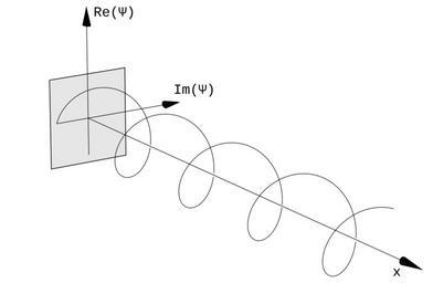 Keywords: Travelling Particle Wavefunction.svg The complex wavefunction of a travelling particle This wavefunction extends to infinity This also depicts circularly polarised light although this image may be better Own drawing plotted in Mathematica edited in Inkscape Created with Inkscape 2007-02-12 inductiveload This image shows a wavefunction with a finite Gaussian wavepacket Mathematica Code This figure requires the use of Arrow3D which is not included in the StandardPackages as of Feb 2007 This can be obtained from Wolfram Research at http //library wolfram com/infocenter/TechNotes/4117/ this location The required packages are << Graphics` << Arrow3D`Arrow3D` The code is <pre><nowiki> wavefunction ParametricPlot3D t -Cos4t Sin4t t 0 7 BoxRatiosï˘ 4 1 1 ImageSize->500 Boxed->False Axes->False PlotPoints->600 ViewPoint-> 3 -2 1 PlotRange->All xaxis Graphics3DArrow3D -1 0 0 8 0 0 HeadSize->UniformSize 5 HeadColor->Black uaxis Graphics3DArrow3D 0 -1 0 0 3 0 HeadSize->UniformSize 5 HeadColor->Black vaxis Graphics3DArrow3D 0 0 -1 0 0 3 HeadSize->UniformSize 5 HeadColor->Black plane Graphics3DPolygon 0 1 2 1 2 0 -1 2 1 2 0 -1 2 -1 2 0 1 2 -1 2 Showwavefunction xaxis uaxis vaxis plane </nowiki></pre> 1D wavefunctions of free particles Plane waves |