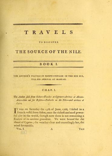 | Keywords: Travels to discover the source of the Nile, in the years 1768, 1769, 1770, 1771, 1772, and 1773 BHL41816163.jpg Travels to discover the source of the Nile in the years 1768 1769 1770 1771 1772 and 1773 in five volumes / 41816163 130732 64412 Table of Contents v 1 http //www biodiversitylibrary org/page/41816163 10 5962/bhl title 64412 Bruce James Not in copyright The BHL knows of no copyright restrictions on this item <br> Biodiversity Heritage Library Check categories 2015 November 21 PD-old-70-1923 Travels to discover the source of the Nile in the years 1768 1769 1770 1771 1772 and 1773 Images uploaded by Fæ Files from the Biodiversity Heritage Library |