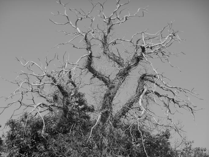 Keywords: tree branches craggy spooky dead crooked bare twisted black and white bent