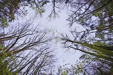 Keywords: tree crown green leaves canopy forest nature branches high background perspective sky aesthetic about below top flora leisure walk