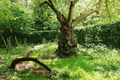 Keywords: tree gnarled trunk old old gnarled tree ancient garden nature wood growth knots branch