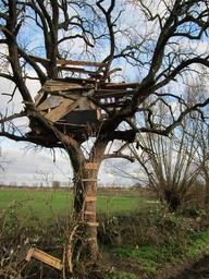 Keywords: tree house deteriorated old abandoned tree building weathered wood decay broken construction