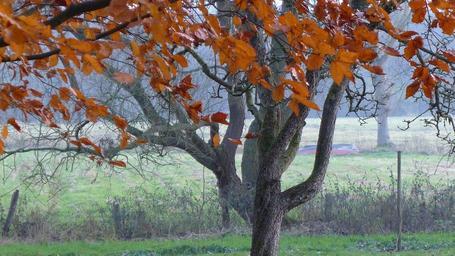 Keywords: tree log aesthetic fall foliage colourless leaves