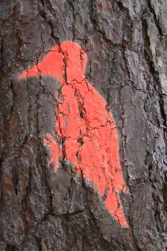 Keywords: tree log woodpecker bird mark forestry nature forest