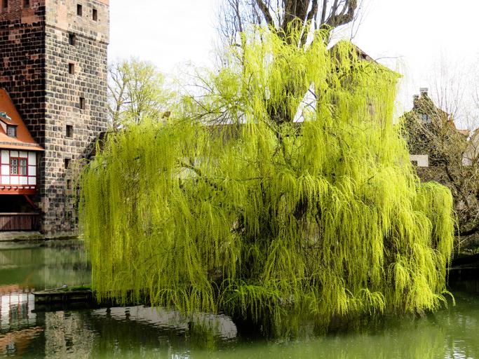 Keywords: tree pasture weeping willow spring jewelry spring harbinger of spring bloom green aesthetic nuremberg hangman's bridge old town