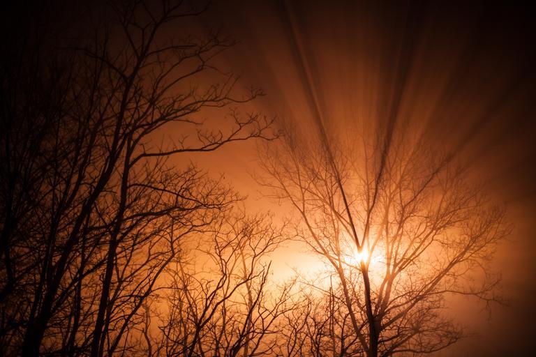 Keywords: tree silhouette sunlight light orange rays nature sunset dusk evening