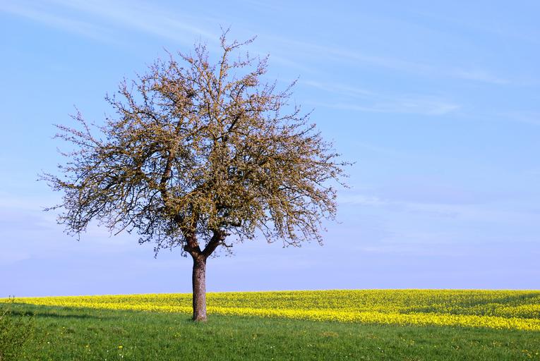 Keywords: tree solitary field peaceful quiet daytime spring sunlight grass sky nature alone single