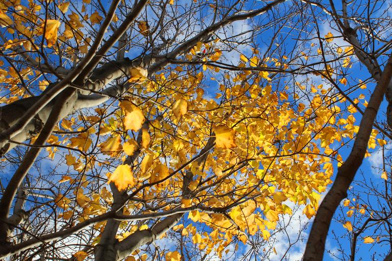 Keywords: trees autumn sky nature forest leaves yellow season foliage