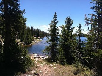Keywords: trees lake woods flora blue sky blue green leaves leafy plants landscape wild outdoors scenic nature scenery pines forest