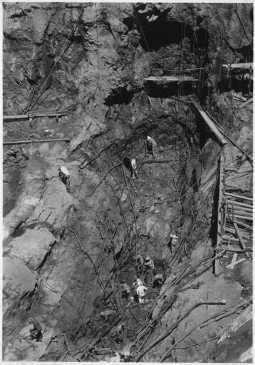| Keywords: "Trench at upstream toe of Boulder Dam foundation, looking toward Nevada side from top of Arizona bench nearly on... - NARA - 293905.jpg Scope and content Photograph from Volume Two of a series of photo albums documenting the construction of Hoover Dam Boulder City Nevada General notes 293905 Local identifier Department of the Interior Bureau of Reclamation Engineering and Research Center 05/18/1981 - 03/04/1988 NARA's Rocky Mountain Region Denver NRGA Building 48 Denver Federal Center West 6th Avenue and Kipling Street Denver CO 80225-0307 1933-06-28 Record group Record Group 115 Records of the Bureau of Reclamation 1889 - 2008 Record group ARC 444 Photograph albums compiled 1903 - 1972 Series ARC 293611 File unit File unit ARC Variant control numbers NAIL Control Number NRG-115-CONSTPHO85006-BC21823 Other versions <gallery> File Trench_at_upstream_toe_of_Boulder_Dam_foundation _looking_toward_Nevada_side_from_top_of_Arizona_bench_nearly_on _-_NARA_-_293905 tif tif File Trench_at_upstream_toe_of_Boulder_Dam_foundation _looking_toward_Nevada_side_from_top_of_Arizona_bench_nearly_on _-_NARA_-_293905 jpg jpg </gallery> NARA-cooperation PD-USGov Construction of the Hoover Dam |