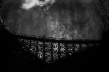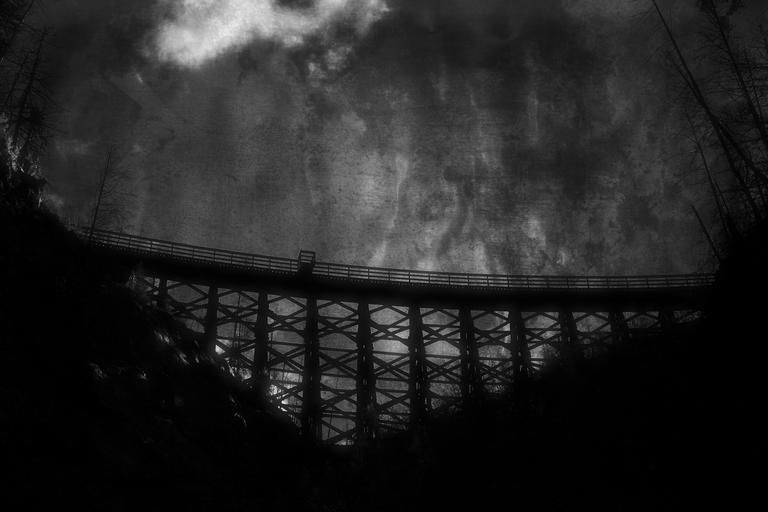 Keywords: blackandwhite black white bw monochrome trestle 8 eight bridge structure wooden kvr kettlevalleyrailway texture contrasts pov myracanyon okanagan bc britishcolumbia canada