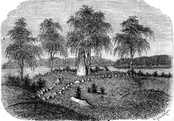 | Keywords: Treudd Lyngstad Sorunda sn (Montelius 1877 s351 fig407).jpg en Engraving depicting a treudd in Lyngsta RAÄ-nr Sorunda 160 1 Sorunda Parish Nynäshamn Municipality Sotholm Hundred Stockholm County Province of Södermanland Sweden <br>The treudd is a starformed three-armed flat cairn with concave sides It dates to the Iron Age <br>This treudd is situated in the middle of an Iron Age gravefield According to FMIS its concave sides have a length of circa 24 m each This treudd has an erected stone in the middle According to FMIS the stone is 1 5 m high The lake in the background ought to be Västra Styran <br>The Picture 407 at Page 351 in the book Sveriges hednatid 1877 by Oskar Montelius is here scanned by Achird in the year 2010 sv Treudd i Lyngsta RAÄ-nr Sorunda 160 1 Sorunda socken Nynäshamns kommun Sotholms härad Södertörn Stockholms län Södermanland Sverige <br>En treudd är en trearmad stensättning med konkava sidor Treuddar dateras till järnåldern <br>Denna treudd är belägen mitt på ett järnåldersgravfält Treudden har enligt FMIS cirka 24 m långa insvängda sidor I detta fall har treudden en rest sten bautasten i mitten Enligt FMIS är den resta stenen 1 5 m hög Sjön i bakgrunden bör vara Västra Styran <br>Figur 407 på sidan 351 i boken Sveriges hednatid 1877 av Oskar Montelius är här skannad av Achird år 2010 de Treudd aus Lyngsta RAÄ-nr Sorunda 160 1 Sorunda Kirchspiel Södermanland Schweden <br>Der Treudd ist eine sternförmige dreiarmige Steinsetzung mit konkaven Seiten 10008901600001 RAÄ-nr Sorunda 160 1 Sveriges hednatid 1877 Oskar Montelius engraving by Wilhelm Meyer 1844-1944 1877 PD-old Sorunda Treuddar Sveriges hednatid och medeltid 1877 Books from the Falbygden Museum Library Documents scanned by User Achird Woodcuts of Sweden Archaeological monuments in Nynäshamn Municipality Flat burial cairns in Södermanland Flat burial cairns in Stockholm County Engravings by Wilhelm Fredrik Meyer |