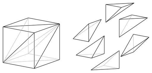Keywords: Triangulated cube.svg orthoschemes Own David Eppstein 2008-12-20 Cubes with other geometric objects Tetrahedra