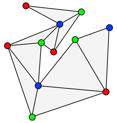 Keywords: Triangulation 3-coloring.svg 3-coloring of the vertices of a polygon triangulation part of Fisk's proof of the art gallery theorem Originally created as part of the http //www ics uci edu/~eppstein/pubs/Epp-WG-09-talk pdf slides for an invited talk Graph-theoretic solutions to computational geometry problems at the http //www lirmm fr/wg2009/index php/Main/HomePage 35th International Workshop on Graph-Theoretic Concepts in Computer Science WG 2009 Montpellier France June 25 2009 own David Eppstein 2009-05-27 Polygons Graph coloring; vertex Files by User David Eppstein from en wikipedia |