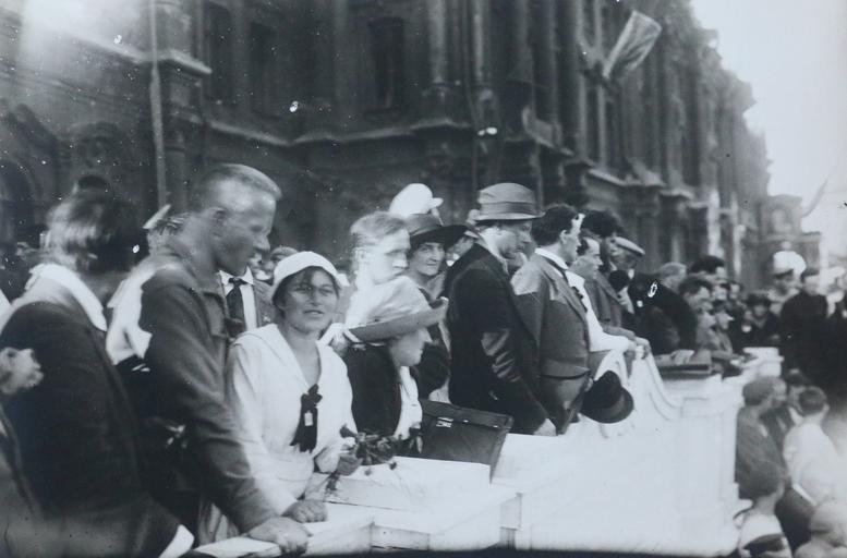 | Keywords: 20th century 20thcentury soviet union sovietunion boris souvarine borissouvarine communist international communistinternational activism russia third international thirdinternational iind congress iindcongress petrograd saint-petersburg saintpetersburg uritsky place uritskyplace 1920 komintern ouritsky place ouritskyplace palace square palacesquare delegates comintern july 1920 july1920 iiird international iiirdinternational Boris Souvarine Papers - Soviet Russia Photos graduateinstitute.ch/home/research/library/archives/boris... Notes: The back of this picture holds the mention (in Russian) "IInd Congress of the IIIrd International. The tribune on Uritsky Square". One recognizes the Winter Palace colonnade in the background. The people photographed may be delegates to the Congress of the IIIrd International. The lady in a white dress seems to be the same as in the photo entitled "Group of the delegates of the IIIrd International, Petrograd". French syndicalist Alfred Rosmer (1877-1964) was one of the French delegates to the Communist International. He wrote about this event: "L’après-midi [17 juillet 1920] un meeting eut lieu sur la vaste place du Palais d’Hiver, si riche en souvenirs. (....) Une tribune était dressée devant le Palais d’où l’on dominait la foule venue pour écouter les orateurs. (...) La scène, c’était le péristyle qu’on atteignait par un haut escalier. La foule immense accourue pour voir le spectacle tenait à l’aise sur la vaste place. Dans ce cadre exceptionnel se déroulèrent une suite de scènes évoquant “ la marche du socialisme à travers les luttes et les défaites vers la victoire”. Unknown photographer. Description: 1 photograph. Black and white ; 11 x 16.5 cm. Sources and further reading: Rosmer, Alfred. 1920. Moscou sous Lénine. Extract available online, "XIII: Smolny - Séance solennelle d'ouverture du IIe Congrès": www.marxists.org/francais/rosmer/works/msl/msl2013.htm Related resources: www.wikiart.org/en/boris-kustodiev/festivities-marking-th... Boris Souvarine Papers - Soviet Russia Photos graduateinstitute.ch/home/research/library/archives/boris... Notes: The back of this picture holds the mention (in Russian) "IInd Congress of the IIIrd International. The tribune on Uritsky Square". One recognizes the Winter Palace colonnade in the background. The people photographed may be delegates to the Congress of the IIIrd International. The lady in a white dress seems to be the same as in the photo entitled "Group of the delegates of the IIIrd International, Petrograd". French syndicalist Alfred Rosmer (1877-1964) was one of the French delegates to the Communist International. He wrote about this event: "L’après-midi [17 juillet 1920] un meeting eut lieu sur la vaste place du Palais d’Hiver, si riche en souvenirs. (....) Une tribune était dressée devant le Palais d’où l’on dominait la foule venue pour écouter les orateurs. (...) La scène, c’était le péristyle qu’on atteignait par un haut escalier. La foule immense accourue pour voir le spectacle tenait à l’aise sur la vaste place. Dans ce cadre exceptionnel se déroulèrent une suite de scènes évoquant “ la marche du socialisme à travers les luttes et les défaites vers la victoire”. Unknown photographer. Description: 1 photograph. Black and white ; 11 x 16.5 cm. Sources and further reading: Rosmer, Alfred. 1920. Moscou sous Lénine. Extract available online, "XIII: Smolny - Séance solennelle d'ouverture du IIe Congrès": www.marxists.org/francais/rosmer/works/msl/msl2013.htm Related resources: www.wikiart.org/en/boris-kustodiev/festivities-marking-th... |