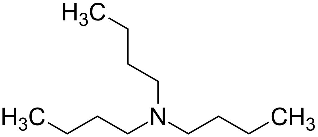 Keywords: Tributylamine 200.svg validSVG Structure of tributylamine Struktur von Tributylamin Own 2014-04-15 Emeldir <span class signature-talk >talk</span> Chemical structure verified https //upload wikimedia org/wikipedia/commons/8/82/Tributylamine_200 svg 1S/C12H27N/c1-4-7-10-13 11-8-5-2 12-9-6-3/h4-12H2 1-3H3 IMFACGCPASFAPR-UHFFFAOYSA-N 102-82-9 203-058-7 PD-chem Tributylamine |