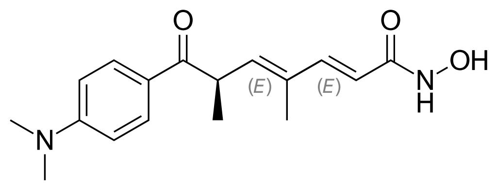 Keywords: Trichostatin A.svg validSVG Skeletal formula of trichostatin A Created using http //www acdlabs com/download/chemsk html ACD/ChemSketch 10 0 and Inkscape Own work after ChEBI http //www ebi ac uk/chebi/searchId do chebiId CHEBI 46024 46024 2008-09-17 Fvasconcellos valid svg Trichostatin A |