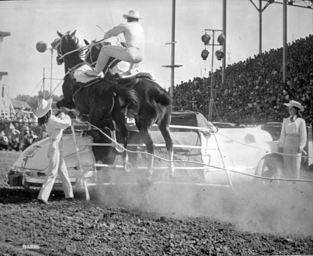 Keywords: alberta calgary calgary stampede calgarystampede stampede rodeo horse blackandwhite monochrome outdoor black and white 1948. A14736. 1948. A14736.