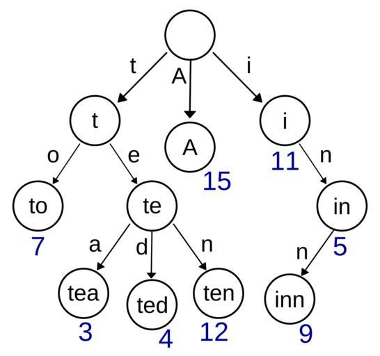 Keywords: Trie example.svg Example of a trie Przykładowe drzewo trie own work based on PNG image by Deco 2006-07-15 upload to English Wikipedia Booyabazooka based on PNG image by Deco Modifications by Superm401 In public domain Trie