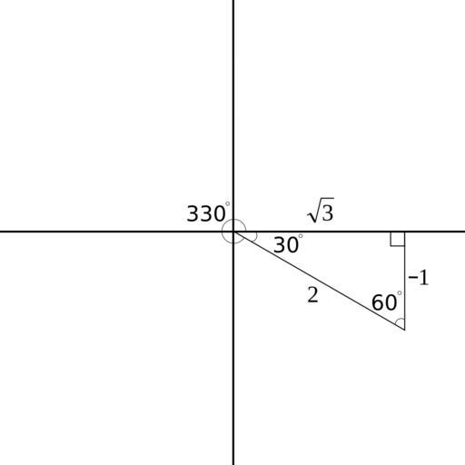 Keywords: TrigTriangleAt330Degrees.svg en A 30-60-90 degree triangle inscribed on a Cartesian plane at a 330 degree angle Created in Inkscape 2015-05-15 own Jbeyerl other versions Trigonometric triangles Uploaded with UploadWizard