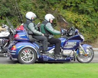 Keywords: Trike.11.arp.jpg A trike motorcycle seen at Aust Motorway Services Bristol England <br> Photographed by Adrian Pingstone in October 2004 and placed in the public domain Honda Goldwing trikes Arpingstone
