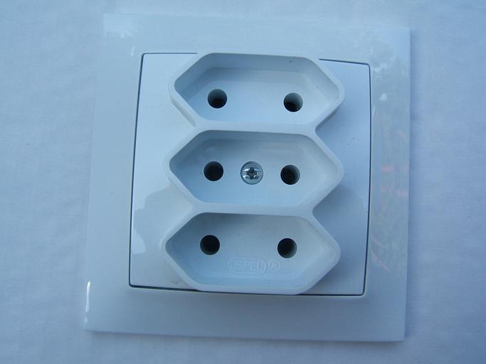 Keywords: Triple-Euro-socket.JPG en Triple mains socket for euro plugs CEE 7/16 manufactured in Poland by Ospel pl Potrójne gniazdko przeznczone do wtyczek euro CEE 7/16 wyprodukowane w Polsce w przedsiębiorstwie Ospel de Dreifachsteckdose für Eurostecker CEE 7/16 hergestellt in Polen bei Ospel 2011-10-03 own Draco flavus cc-zero Uploaded with UploadWizard Mains sockets |