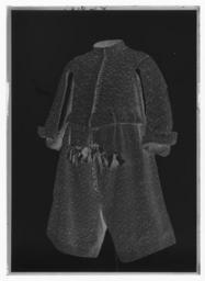 Keywords: Tröja av svart atlas, 1650-tal - Livrustkammaren - 44145-negative.tif Detta är en dräkt som man mycket gärna skulle vilja sätta i samband med Karl X Gustavs kröning men det finns ännu inget dokumentariskt bevis för detta dräkten ingår ev i fransyska varorna Det är en synnerligen rikt utstyrd dräkt och den har såväl i sitt broderi som i sin foder brokad en ovanligt hög guldhalt I 1671 års inventarium sägs det att dräkten utgörs av kappa tröja byxor knäband skorosor och handskar Allt av svart atlas med Gull heelöfwer borderat Numera är tyvärr dräkten inte längre så fullständig både 1671 och 1676 års inventarier vittnar visserligen om kappans existens men därefter är den försvunnen man hade redan 1671 tagit bort spetsarna av guld och 20 år senare omtalas kappan ej längre Nuvarande inventarium omtalar blott tröja byxor och 1 handske Under ett annat inventarienummer 3435 har emellertid kunnat identifieras ett dräkttillbehör nämligen ett gehäng med samma broderi Den svarta atlasen har en vådbredd av ca 53 cm utan stad Staden är 1 3 cm bred 10 gröna 10 vita 10 gröna 10 vita 10 gröna samt 5 tjocka svarta trådar - tuskaft Trådarnas antal kan variera Det hela ytan täckande broderiet är utfört i läggsöm och har en mönsterrapport av h 10 cm b 6 8 cm Det är utfört med olika sorters guldkantiljer samt paljettsträngar Längs en del kantsömmar har man sytt på ett smalt guldsnöre bestående av en tvinnad tråd omspunnen med lan Broderiet är nersytt med vitt och gult silke samt tjockare rosa lintråd <br/><br/>Analysresultat Tråd och lan av legerat guld huvudbeståndsdelar <br/>Silver xx<br/>Guld xxx<br/>Koppar xxx<br/>Zink 0<br/><br/>Mönstret är ett stiliserat blomstermönster där ett ringformigt omtag snarast utvecklats till en krona som utdragna klockliknande blomkalkar vända sig till eller ifrån I plaggen kan man observera att broderiet uppvisar olika kvaliteter och här kan även spåras skarvar i tyget underlaget De tillskurna bitarna uppvisa en klumpigare torrare karaktär i broderiets utförande samt smärre avvikelser från det gängse utförandet Så t ex har i tröjan den lilla 5-bladiga blomman ovanför kronan sitt översta mellersta blad sytt med horisontella kantiljer istället för vertikala som det borde varit Mönstret är också gyttrigare och oredigare Kronans tinnar är omramade av i öglor lagda konturtrådar och ej som i det ursprungliga broderiet där konturen går upp och ned <br/>Mönsterrapport ca h 77 mm b 58 mm Tröjan av innocenttyp är sydd med 2 framstycken som utökats såväl upptill på axelpartiet som utefter ärmringningen och längs sidosömmen med tillsatta bitar I ryggen har skarvstyckena infogats längs en mittsöm ursprungligen kunde ryggstycket ha varit helt Nu ligger emellertid på ömse sidor mittsömmen en smal blott 1 5 cm bred skarv Likaså har man även baktill gjort tröjan något längre genom skarvar utefter axel- och halsringningarna Ärmarna har bara utvidgats obetydligt genom en skarvad remsa utefter underärmstyckets bakre övre del samt på bägge styckena nertill utefter ytterkantens söm ärmsprundets sida ca 27 cm Kragen har klippts upp på samma sätt som ryggstycket så att intill mittsömmen 2 små skarvstycken ligga på ömse sidor synbarligen även placerade upp- och nedvända Tröjan har 10 skört och i midjesömmen sitta på insidan 8 st byxtampar vardera med 2 hål Fodret utgöres av guldbrokad med svart botten Det har en vådbredd av minst 47 cm ev ca52 x 14 á 15 tr/cm2 Det är en ripsvävnad med varp av svart otvinnat silke Inslagen är 14 st med gult silke högertvinnad med guldlan samt 14 st med gult silke högertvinnad med guldlan samt 14 st svarta med guldlan på rätan Stad ca 1 3 cm 8 gröna 9 vita 12 gröna 8 vita 11 gröna 6 svarta trådar - de färgade i atlasbindning de svarta i lärftsbindning Mönsterrapport h 7 7 cm b 5 8 Mönstret består av halvnaturalistiska små blomsterkvistar <br/><br/>Analysresultat Metalltråd tvinnad med textiltråd huvudbeståndsdelar <br/>Silver xxx<br/>Guld xx<br/>Koppar xx<br/>Zink 0<br/><br/>Då fodret är mycket trasigt och slitet har man fodrat in kragen och den övre delen av tröjan med svart taft Skörten som ju också är fodrade med brokaden har fått bitar av denna på varierande led Man har givetvis velat utnyttja det dyrbara materialet till fullo I framkanten på vänster sida har tröjan en knapphålsrad med 23 knapphål 2 cm långa På motstående sida finns 22 knappar i behåll de är 1 2 cm i diameter Knapphålsraden är på undersidan fodrad med guldbrokad av samma typ som finns i byxornas fickor Nertill i framstyckena finns planschetter som når t o m det 13 e knapphålet eller är ca 22 cm långa Dessa är klädda med något grövre linnelärft än den oblekta linnelärft som utgör mellanfoder i tröjan 23x18 tr/cm2 Det finns 3 knappar med tränsar i ståndkragen Knapparna är överklädda med olika guldtrådar lan och kantiljer I midjan på tröjan har man mellan fodren lagt en avklippt stadremsa vävd randig i gult och orange med svart som ev är en avklippt stad från någon annan dräkts tyg ev den oskurna svarta sammetsdräkten nr 3421 Detta för att ge mera styrsel åt plagget Att man klippt till plaggets olika delar och beräknat sömmarnas placering innan man broderat dem visar bl a ärmarnas nedre parti som på den broderade sidan ju skulle vikas till uppslag De har alltså ej behövt broderas ända ned utan man har lämnat den svarta atlasen bar på ett knappt 10 cm brett stycke Blott mitt fram på högra sidan under knappraden finns en knypplad ca 1 7 cm bred guldspets med guldlan kvar original caption Karl X Gustavs kröning Kristinas kröning Karl X Gustav och Hedvig Eleonoras bröllop 1647 LRK Karl X Gustav av Sverige Modelejon 2002 place of origin original filename LN_B10545_013425 55955 inventory number LRK 19340 44145 CC0 Tröja av svart atlas 1650-tal - Livrustkammaren - 44145 tif <g