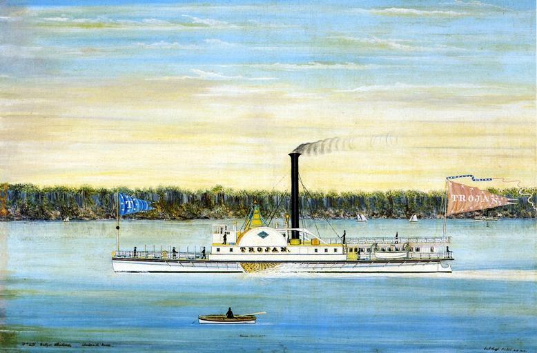 Keywords: Trojan (steamboat 1845) by Bard Bros.jpg en Trojan Hudson River steamboat oil on canvas by James and John Bard http //www the-athenaeum org/ The Athenaeum org James Bard 1815-1897 and John Bard 1815-1856 1845 Original in Mariners' Museum at Newport News VA as of 1997 Also reproduced Mariner's Museum and Peluso Anthony J Jr The Bard Brothers -- Painting America under Steam and Sail Abrams New York 1997 ISBN 0-8109-1240-6 PD-Art James Bard 1841-1850 works Steamboats of the Hudson River Images from the-athenaeum org |