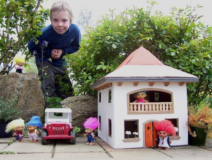 Keywords: Trolls Play.jpg en Edwin Plays Trolls Own Motorau 2006 09 03 OTRS pending Larger Format Otago New Zealand Personality rights Dolls