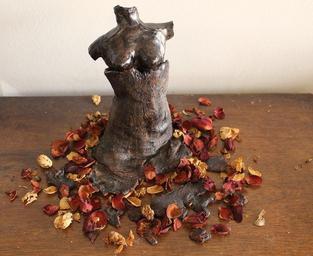 Keywords: argila queimada e tingida com betume, aproximadamente 27 x 15 cm.