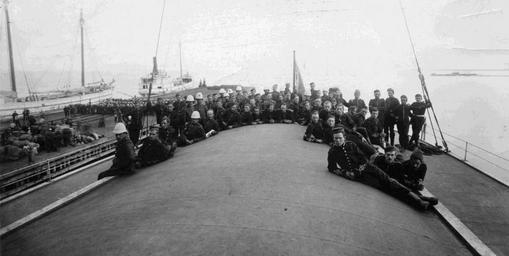 | Keywords: riel rebellion rielrebellion cpr troops militia ships lake superior lakesuperior second riel rebellion secondrielrebellion north-west rebellion northwestrebellion algoma ss algoma ssalgoma port arthur portarthur thunder bay thunderbay canada ontario military military history militaryhistory uniforms rebellion soldiers history blackandwhite monochrome road black and white Date: 1885 Description: This photograph shows a large number of soldiers gathered together on the deck of the SS Algoma, a Canadian Pacific Railway (CPR) ship, while docked in Port Arthur, Ontario in 1885. The troops pictured here are returning from fighting the North-west Rebellion (also referred to as the Second Riel Rebellion). Accession No.: 983.29.39 Date: 1885 Description: This photograph shows a large number of soldiers gathered together on the deck of the SS Algoma, a Canadian Pacific Railway (CPR) ship, while docked in Port Arthur, Ontario in 1885. The troops pictured here are returning from fighting the North-west Rebellion (also referred to as the Second Riel Rebellion). Accession No.: 983.29.39 |