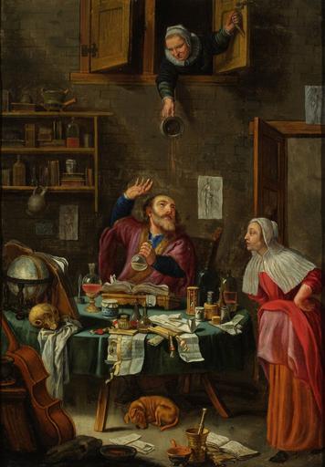 Keywords: Trouble Comes to the Alchemist FA 2000.001.269.jpg century 17 oil canvas board in 22 25 31 Institution Chemical Heritage Foundation object history exhibition history The Fisher Collection at the Franklin Institute Philadelphia PA December 13 1972 to March 4 1973 nr 24 credit line Gift of Fisher Scientific International CHF Collections http //www chemheritage org/ Chemical Heritage Foundation Photograph by Will Brown Formerly attributed to Pieter van Slingelandt Remnants of two different signatures in the bottom right corner 1 The darker most visible of the two reads P Sl ¦ ¦ It is aged and abraded The right half is missing The placement of the signature is strange as it is too far to the right for the entire name to fit 2 There is a very abraded older signature only visible under the stereomicroscope It starts with a P but the rest of the lettering is illegible Image downloaded with permission from the Chemical Heritage Foundation as part of the Wikipedian in Residence initiative CHF-cooperation PD-old-100-1923 cc-by-3 0 Chemical Heritage Foundation accession number FA 2000 001 269 Alchemists from the Netherlands 17th-century oil paintings Chemical Heritage Foundation Images from the Chemical Heritage Foundation Uroscopy Physical examinations Chamber pots in art Pouring in art Xanthippe |