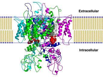 | Keywords: Trpv1 pip2 bilayer.png en Created using PyMol and a homology model of the TRPV1 ion channel based on a homology model published in cite journal Brauchi S Orta G Mascayano C Salazar M Raddatz N Urbina H Rosenmann E Gonzalez-Nilo F Latorre R Dissection of the components for PIP2 activation and thermosensation in TRP channels Proceedings of the National Academy of Sciences of the United States of America 104 24 10246 “51 2007 June 17548815 1891241 10 1073/pnas 0703420104 Own Boghog2 2008-11-02 Protein structures Ion channels |