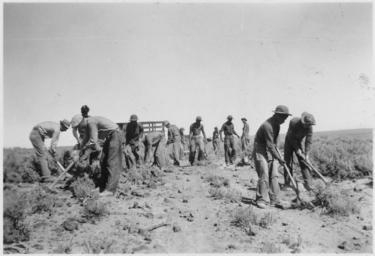 | Keywords: Truck trails. Shank's crew on road maintenance - NARA - 298346.tif Scope and content Camp DG 4 is located one mile southwest of Springfield Idaho in the SE 1/4 Section 14 Township 4 South Range 32 East It is occupied by CCC Company 990 from Big Sur State Park 12 Monterey District California The work area of this camp lies in Grazing District No 3 It is located about one mile from the rail head Construction of the Camp was begun by the advanced detail on May 1 It was occupied by the main body May 15 Field work was begun May 30 General notes 298346 Local identifier Department of the Interior Bureau of Land Management Idaho State Office Burley District Office 07/16/1946 NARA's Pacific Alaska Region Seattle NRIAS 6125 Sand Point Way NE Seattle WA 98115-7999 other date ~ 1935 Record group Record Group 49 Records of the Bureau of Land Management 1685 - 2006 Record group ARC 378 Range Improvement Soil and Moisture Conservation Project Files compiled ca 1935 - ca 1947 Series ARC 298326 File unit CCC Camp DG-4 Springfield Idaho ca 1925 - ca 1930 File unit ARC 298327 Variant control numbers NAIL Control Number NRIS-49-BURLEYRANGEIMP-DG4SPRING-10D yes Other versions <gallery> File Truck_trails _Shank's_crew_on_road_maintenance_-_NARA_-_298346 tif tif File Truck_trails _Shank's_crew_on_road_maintenance_-_NARA_-_298346 jpg jpg </gallery> NARA-cooperation PD-USGov NARA TIF images with categorized JPGs |
