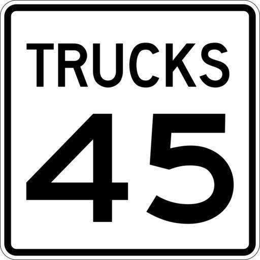 Keywords: Trucks Speed 45 sign.svg 600 mm by 600 mm 24 in by 24 in Truck Speed Limit sign made to the specifications of the http //mutcd fhwa dot gov/SHSm/regulatory pdf 2004 edition of Standard Highway Signs sign R2-2 Uses the http //www triskele com/fonts/index html Roadgeek 2005 fonts United States law does not permit the copyrighting of typeface designs and the fonts are meant to be copies of a U S Government-produced work anyway The outside border has a width of 1 1 mm and a color of black so it shows up; in reality signs have no outside border own Ltljltlj User Ltljltlj/Template trucks 45 number R2-2 - Truck Speed Limit |