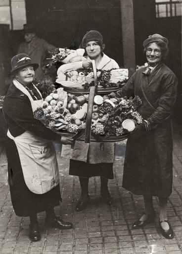 | Keywords: the women's library thewomenslibrary hires 5FWI/B/2/2/46/022 Photograph, printed paper, monochrome, three women holding up two trugs of flowers and vegetables destined as gifts for the King and Queen who were visiting the market 5FWI/B/2/2/46/022 Photograph, printed paper, monochrome, three women holding up two trugs of flowers and vegetables destined as gifts for the King and Queen who were visiting the market | ||||