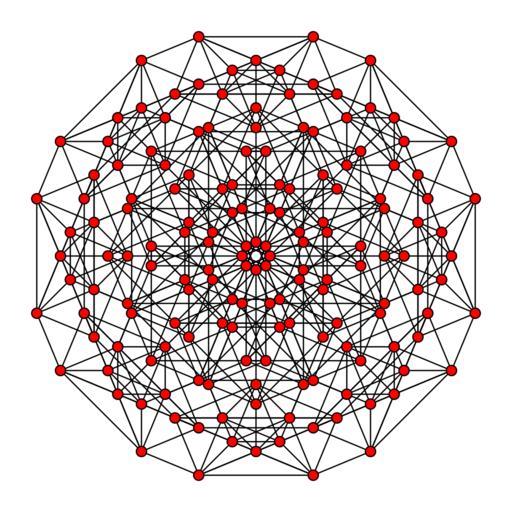 Keywords: Truncated 5-demicube D5.svg en 5-demicube graph own Tomruen Set of colored Coxeter plane graphs red orange yellow green vertices
