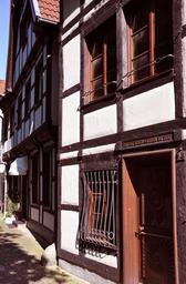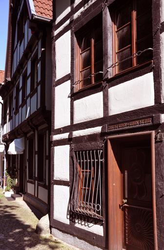 Keywords: truss home construction building architecture history road idyll small town romance romantic contrast facade door row of houses graduation series perpendicular germany north rhine westphalia