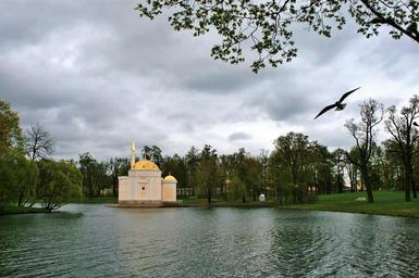 Keywords: tsarskoe selo estate st petersburg pond chapel ornate trees