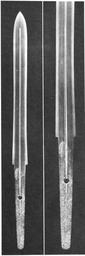 | Keywords: Tsurugi Yoshimitsu ShirayamahimeShrine.jpg en Tsurugi Tōshirō Yoshimitsu The blade was part of the dowry of the adopted daughter Seitaiin of Tokugawa Iemitsu on her wedding with Maeda Mitsutaka; one year after Seitaiin's death her son Maeda Tsunanori offered the blade to the Shirayamahime Shrine praying for her happiness in the next life; width 2 2 cm 0 87 in Kamakura period 34 8 cm 13 7 in Ishikawa Hakusan Shirayamahime Shrine lent to Ishikawa Prefecture Art Museum ja 剣 銘 吉光 藤四郎吉光 白山比咩神社 34 8 cm 13 7 in 鎌 時代中 Portfolio of National treasures Volume 2nd Association of Cultural Properties Tokyo 1955-03-30 国 図録 第2集 財団法人 文化財協会 京都千代田区 ヶ関 1953-03-30 Association of Cultural Properties 1953-03-30 PD-Japan-oldphoto Tsurugi Yoshimitsu ShirayamahimeShrine rotated jpg Ken tanto National Treasures of Japan crafts Metalwork of the Kamakura period Shirayamahime-jinja |