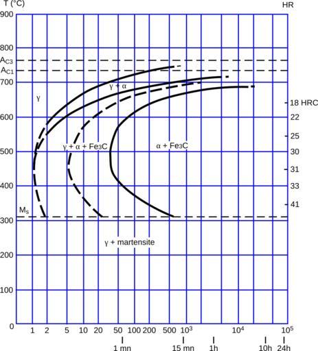 Keywords: TTC C55 fr.svg en Isothermal diagram for C55 steel SAE 1055 in french fr Diagramme TTT de l'acier C55 SAE 1055 en français own Cdang 2009-01-21 Created with Inkscape Isothermal transformation diagrams