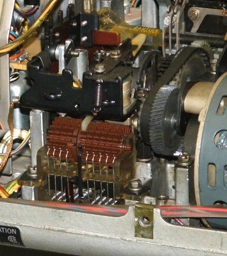 Keywords: TTYanswserbackMechanism.jpg Teletype Model 33 ASR showing the answer-back drum the brown spined cylinder at the left center of the image By breaking off spines of this drum the message sent in response to the ASCII ENQ character could be encoded The drum operates like a music box mechanism with the comb of metal fingers in front of the drum reading out the message as the drum rotates 2013-11-25 12 15 47 own Douglas W Jones cc-zero Uploaded with UploadWizard ASR-33 Location not applicable |