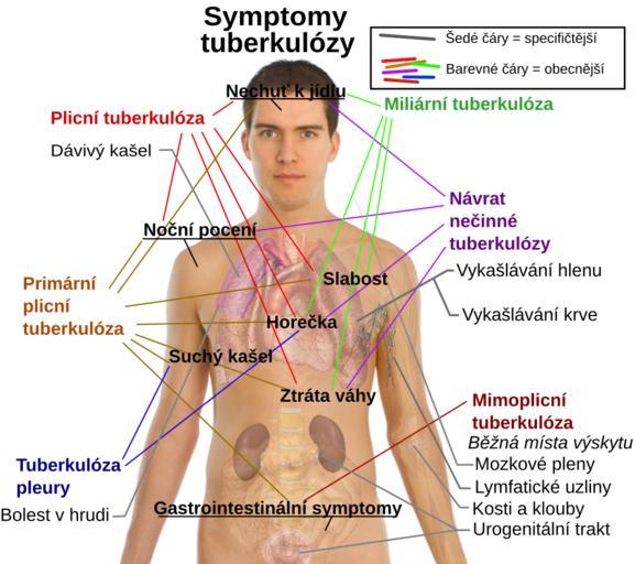 Keywords: Tuberculosis symptoms cs.svg en Main symptoms of different variants and stages of tuberculosis See Wikipedia Tuberculosis with many symptoms overlapping with other variants while others are more but not entirely specific for certain variants Multiple variants may be present simultaneously <P>Model Mikael Häggström To discuss image please see Template talk Häggström diagrams <P>References http //www emedicinehealth com/tuberculosis/page3_em htm Tuberculosis Symptoms From eMedicineHealth Author George Schiffman MD FCCP Last Editorial Review 1/15/2009 Additional symptoms for primary/early pulmonary infection http //www wrongdiagnosis com/t/tuberculosis/symptoms htm wrongdiagnosis com --> Diseases » Tuberculosis » Symptoms Retrieved on June 1 2009 Tuberculosis_symptoms svg 2011-07-17 21 27 UTC Tuberculosis_symptoms svg Mikael Häggström derivative work Adam Zábranský <span class signature-talk >talk</span> Tuberculosis symptoms versions translation to czech language Adam Zábranský Tuberculosis_symptoms svg Own work by uploader Mikael Häggström g </nowiki> Uploaded with derivativeFX SVG diagrams of the adult male human body by Mikael Häggström Tuberculosis |