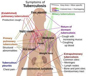 Keywords: Tuberculosis symptoms.svg en Main symptoms of different variants and stages of tuberculosis See Wikipedia Tuberculosis with many symptoms overlapping with other variants while others are more but not entirely specific for certain variants Multiple variants may be present simultaneously <P>To discuss image please see Template talk Human body diagrams <P>References http //www emedicinehealth com/tuberculosis/page3_em htm Tuberculosis Symptoms From eMedicineHealth Author George Schiffman MD FCCP Last Editorial Review 1/15/2009 Additional symptoms for primary/early pulmonary infection http //www wrongdiagnosis com/t/tuberculosis/symptoms htm wrongdiagnosis com --> Diseases » Tuberculosis » Symptoms Retrieved on June 1 2009 All used images are in public domain Mikael Häggström gallery of 2014 2009-06-01 Tuberculosis symptoms versions See also <gallery class nochecker > File Pulmonary tuberculosis symptoms svg Pulmonary tuberculosis symptoms File Extrapulmonary tuberculosis symptoms svg Extrapulmonary tuberculosis symptoms </gallery> Human body diagrams Tuberculosis SVG diagrams of the adult male human body by Mikael Häggström |