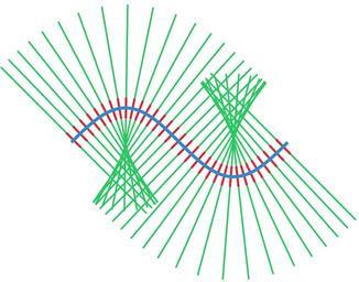 Keywords: Tubular neighborhood.png Illustration of en Tubular neighborhood Made with en Matlab Oleg Alexandrov 03 01 1 June 2007 UTC Public domain Created with MATLAB Source code MATLAB <source lang matlab > illustration of tubular neighborhood function main f inline 'sin x ' 'x' ; will construct a tubular neighborhood of this curve a 0; b 2 pi; N 100; X linspace a b N ; consider N points in the interval a b Y f X ; the curve ll 3; length of lines perpendicular to the curve lls 0 3; smaller subsegments thin_line 2; thick_line 4; will draw lines perpendicular to the graph of Y f X at points separted by length of 'spacing' spacing 0 033; M floor spacing N ; colors red 0 867 0 06 0 14; blue 0 129 205/256; green 0 200 70/256; figure 1 ; clf; hold on; axis equal; axis off; plot the lines for k 1 N p k-1 M+2; if p > N break; end the normal to the curve at X p Y p Normal - Y p+1 -Y p-1 X p+1 -X p-1 ; Normal Normal/norm Normal ; plot X p -ll Normal 1 X p +ll Normal 1 Y p -ll Normal 2 Y p +ll Normal 2 'color' green 'linewidth' thin_line plot X p -lls Normal 1 X p +lls Normal 1 Y p -lls Normal 2 Y p +lls Normal 2 'color' red 'linewidth' 0 7 thick_line end plot the curve plot X Y 'linewidth' thick_line ; saveas gcf 'Tubular_neighborhood eps' 'psc2' </source> Images with Matlab source code tubular neighborhood Files by User Oleg Alexandrov from en wikipedia math |