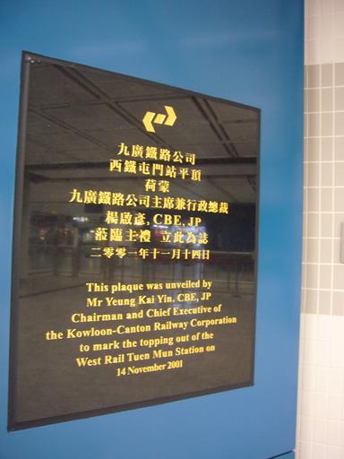 Keywords: Tuen Mun Station opening.jpg Exits of Tuen Mun Hong station mtr Own 08-05-01 TheBigGap Tuen Mun Station Plaques installed in 2001 Plaques of the Mass Transit Railway MTR
