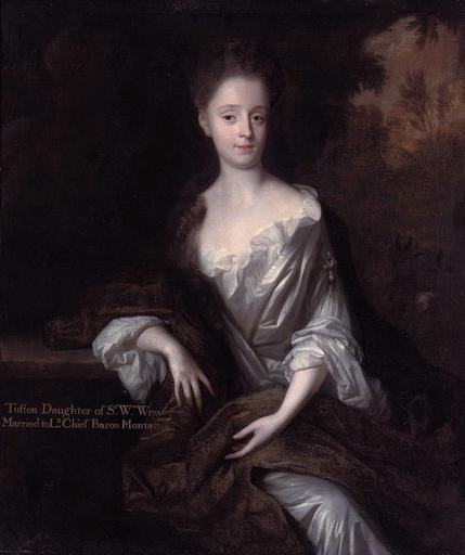 MAKE A MEME View Large Image Tufton Wray (d 1712) - Circle of Herman van der Mijn.jpg circle of en Portrait seated in an oyster satin dress and white chemise with a dark green wrap her right arm resting on a ledge a landscape beyond inscribed 'Tufton Daughter of Sr Wm ...