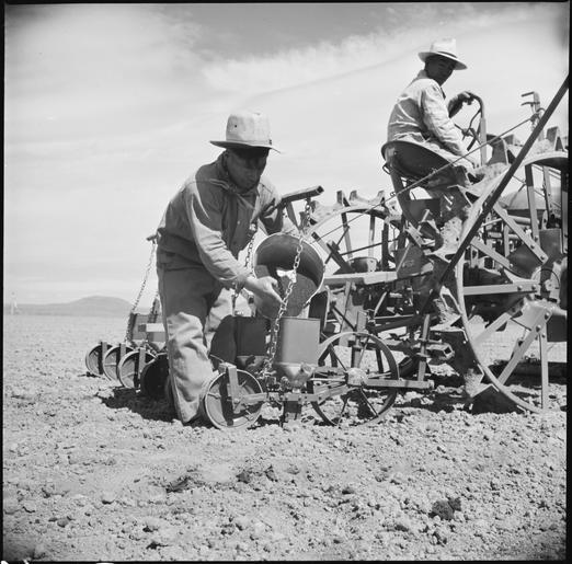 | Keywords: Tule Lake Relocation Center, Newell, California. K. Kubo, evacuee-farmer from Clarksburg, Californi . . . - NARA - 538238.tif Scope and content The full caption for this photograph reads Tule Lake Relocation Center Newell California K Kubo evacuee-farmer from Clarksburg California putting onion seed in an automatic planter Each machine can plant about fifteen acres of white onions a day General notes 538238 Local identifier 210-G-D46 Department of the Interior War Relocation Authority 02/16/1944 - 06/30/1946 NARA-Author Stewart Francis War Relocation Authority photographer Photographer 8464475 <br /> Still Picture Records Section Special Media Archives Services Division NWCS-S National Archives at College Park 8601 Adelphi Road College Park MD 20740-6001 1942-07-01 Record group Record Group 210 Records of the War Relocation Authority 1941 - 1989 Record group ARC 537 Central Photographic File of the War Relocation Authority compiled 1942 - 1945 Series ARC 536000 File unit File unit ARC Variant control numbers NAIL Control Number NWDNS-210-G-D46 yes Other versions <gallery> File Tule_Lake_Relocation_Center _Newell _California _K _Kubo _evacuee-farmer_from_Clarksburg _Californi_ _ _ _-_NARA_-_538238 tif tif File Tule_Lake_Relocation_Center _Newell _California _K _Kubo _evacuee-farmer_from_Clarksburg _Californi_ _ _ _-_NARA_-_538238 jpg jpg </gallery> NARA-cooperation PD-USGov Tule Lake War Relocation Center NARA TIF images with categorized JPGs |